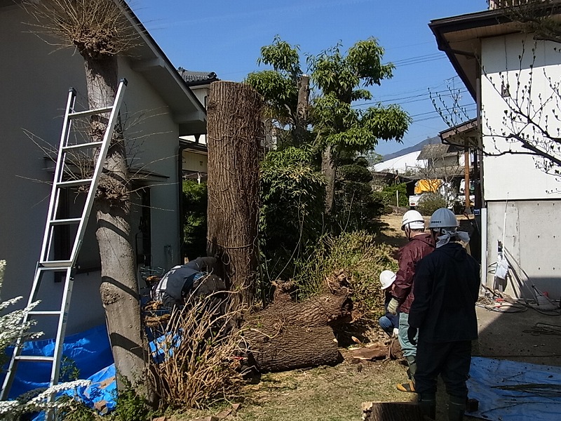 中村庭園では主に長野市北部を中心に、個人宅の庭木の手入れ、樹木伐採、消毒をメインに仕事をしており、時には家の周りの除草、芝の管理、畑の草刈りなどもしています。