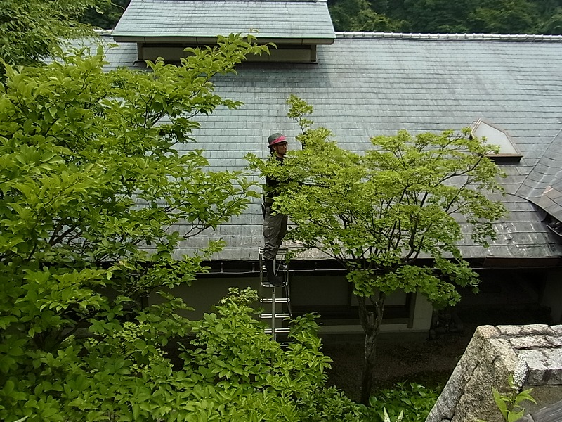 少し行くと、この辺は旅館などもあるため、旅館の庭木の手入れ、坪庭の施工など幅広く行っております。